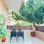 L'Happy House-Steps From Nea Chora Beach dispone di un patio e un salottino e di comfort come un impianto di climatizzazione. Quest'appartamento comprende 2 camere da letto. Gli ospiti della struttura potranno usufruire di asciugacapelli e teli da bagno nel bagno. Inoltre, sono disponibili un bagno con WC separato.